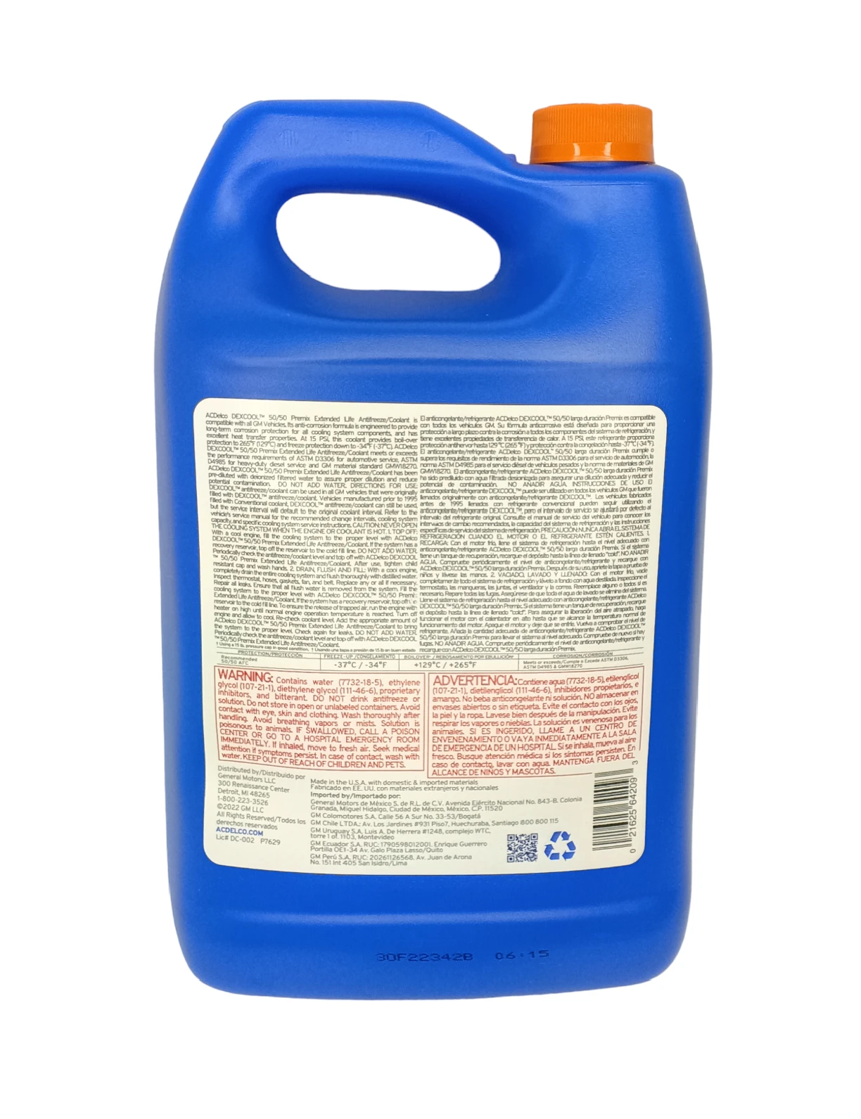 ACDelco DEX-COOL® ANTIFREEZE/COOLANT Es un refrigerante universal para motores, que incorpora una tecnología de aditivos inhibidores de corrosión de carboxilatos. Este refrigerante cumple con ambas normas internacionales ASTM D 3306 para servicio automotriz y ASTM D 4985 para servicio diésel de servicio pesado. Posee en su formulación nitritos para la protección de la corrosión por cavitación en cilindros, gracias a utilizar la tecnología de carboxilatos para una adecuada protección de las superficies metálicas básicas de la mayoría de los sistemas de transferencia de calor. Dado que el refrigerante no posee fosfatos ni silicatos, los depósitos por aguas duras en el sistema de refrigeración son eliminados. El bajo nivel de abrasivo sólidos disuelto en ACDelco DEX-COOL® ANTIFREEZE/COOLANT da como resultado una mejora de la vida útil de los sellos de las bombas de agua incrementando su vida útil entre un 30 y un 50% con respecto a las formulaciones convencionales con silicatos.